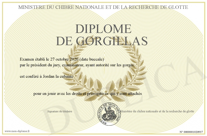 Envoyez par email votre Diplôme de gorgillas personalisé