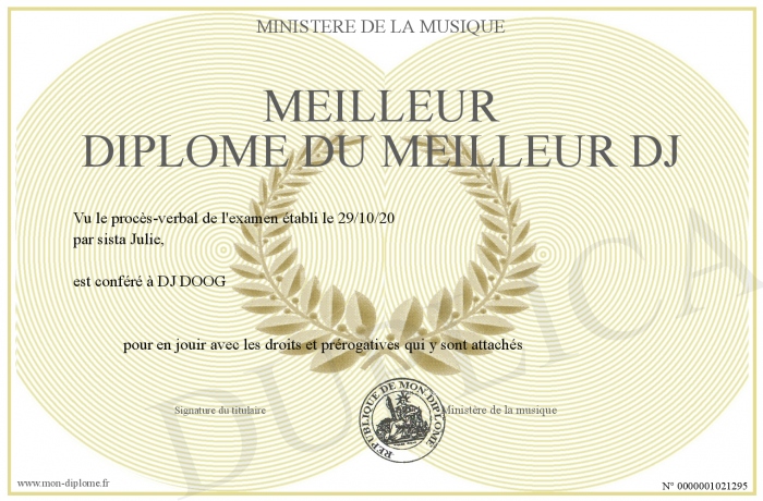Envoyez par email votre meilleur diplôme du meilleur DJ personalisé