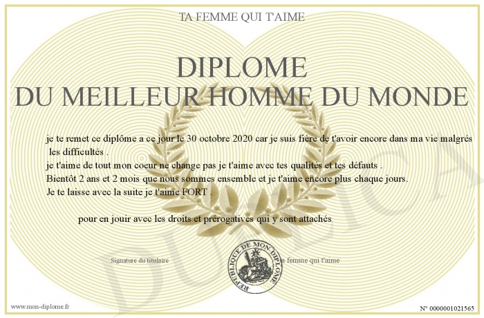 Envoyez par email votre Diplôme du meilleur homme du monde personalisé