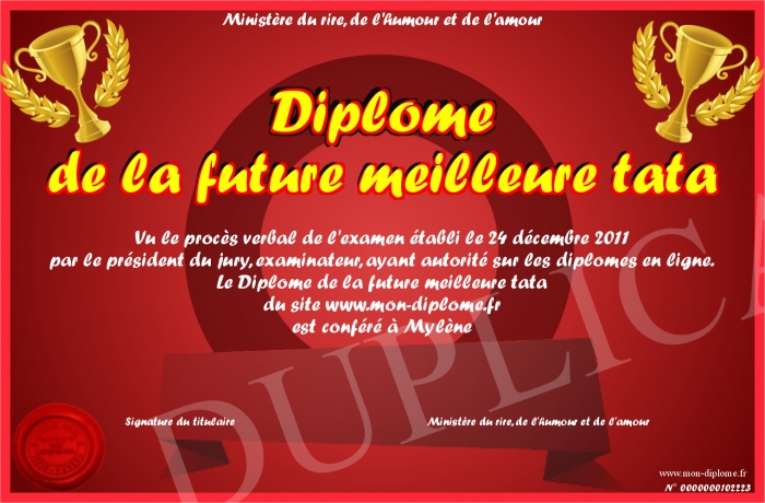 Envoyez par email votre Diplome de la future meilleure tata personalisé