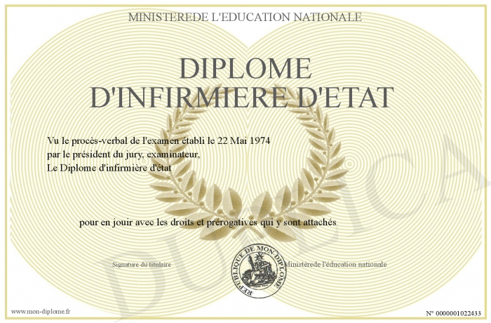 Envoyez par email votre Diplôme D'infirmière D'état personalisé