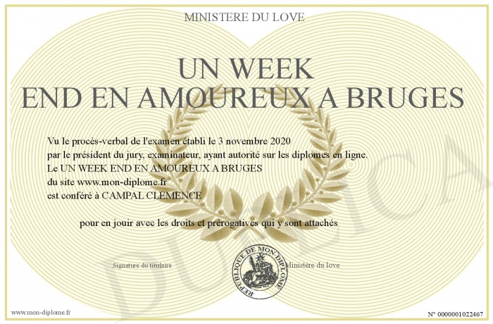 Envoyez par email votre UN WEEK END EN AMOUREUX A BRUGES personalisé