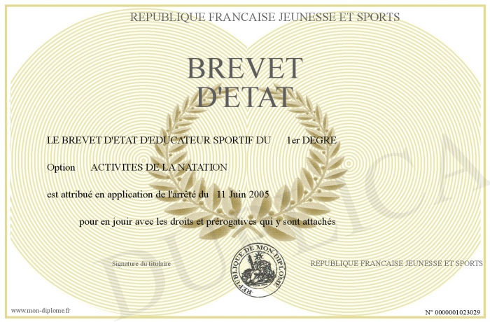 Envoyez par email votre BREVET D'ETAT personalisé
