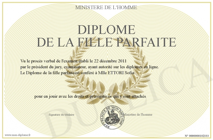 Envoyez par email votre Diplome de la fille parfaite personalisé