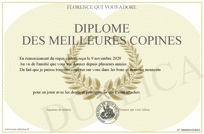 Envoyez par email votre Diplôme des Meilleures Copines personalisé