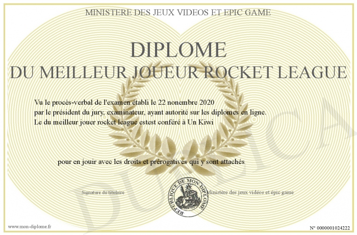 Envoyez par email votre Diplôme du meilleur joueur rocket league personalisé