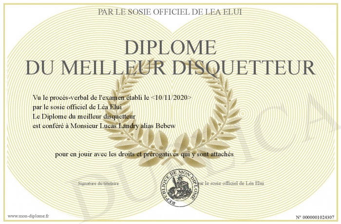 Envoyez par email votre Diplôme du meilleur disquetteur personalisé