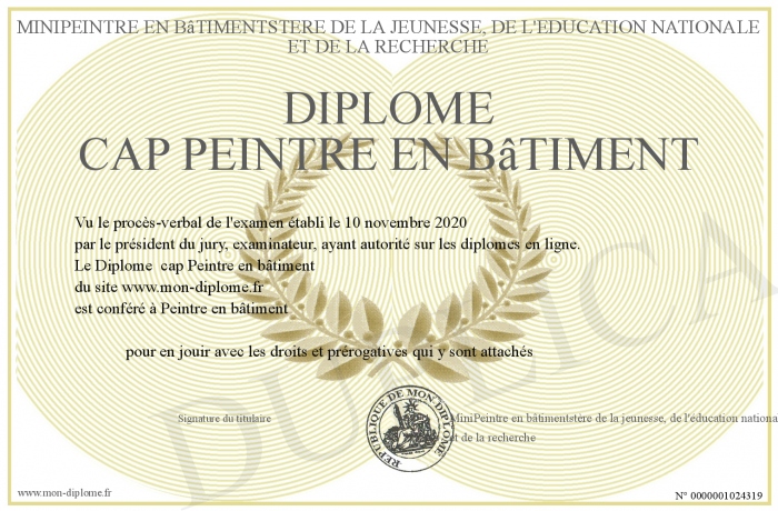 Envoyez par email votre Diplôme cap Peintre en bâtiment personalisé