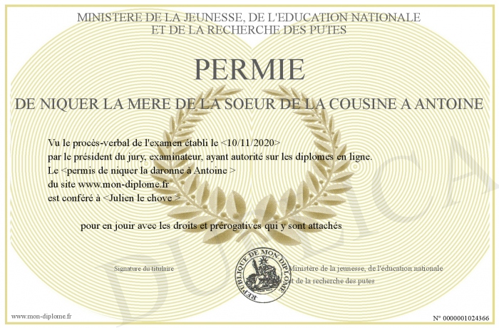 envoyé par le Ministère de la jeunesse, de l'éducation nationale-et de la recherche des putes !
