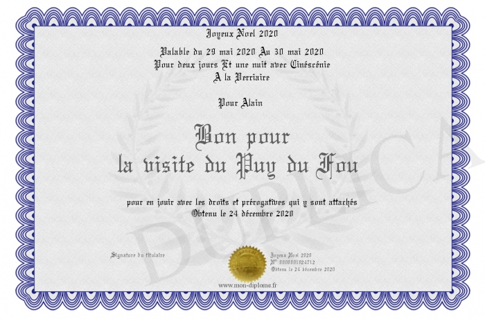 Envoyez par email votre Bon pour la visite du Puy du Fou personalisé