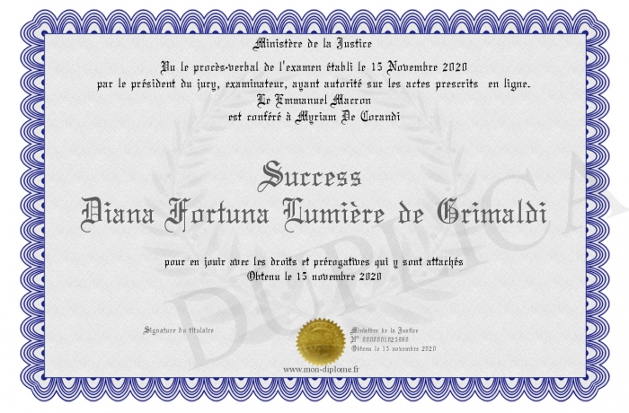 Envoyez par email votre Success Diana Fortuna Lumière de Grimaldi personalisé