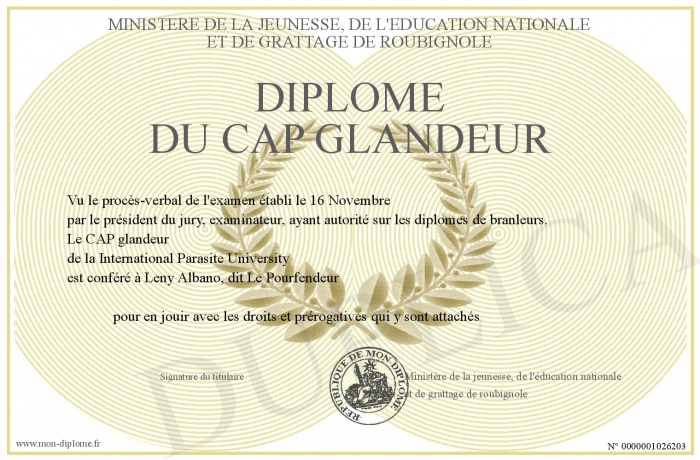Envoyez par email votre Diplôme du CAP Glandeur personalisé