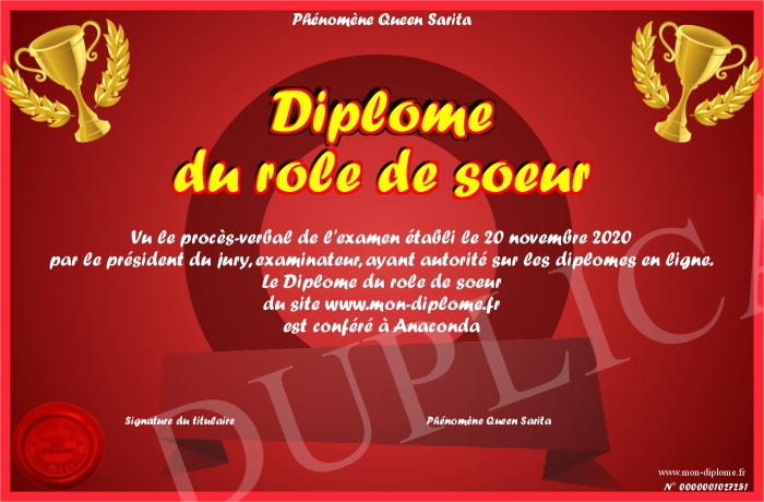Envoyez par email votre Diplôme du rôle de soeur personalisé
