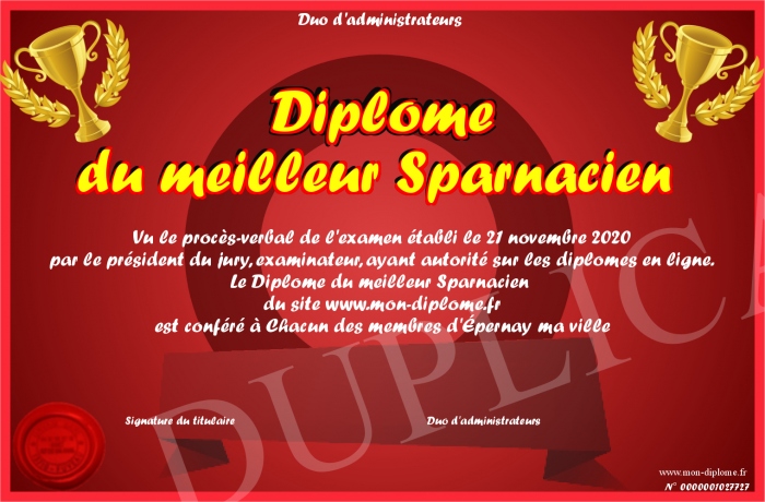 Envoyez par email votre Diplôme du meilleur Sparnacien personalisé
