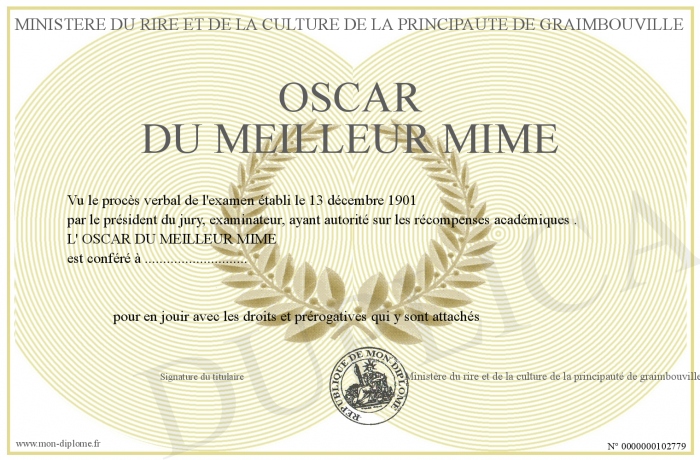 Envoyez par email votre OSCAR DU MEILLEUR MIME personalisé
