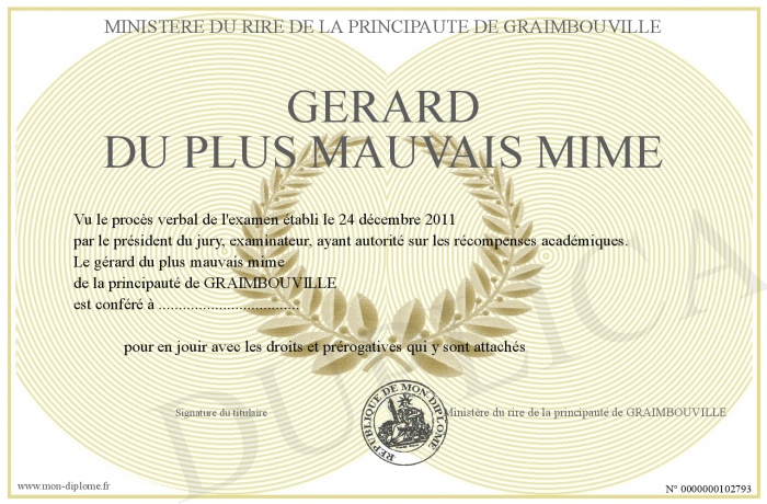 envoyé par le Ministère du rire de la principauté de GRAIMBOUVILLE !