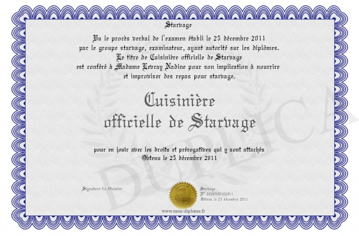 Envoyez par email votre Cuisinière officielle de Starvage personalisé