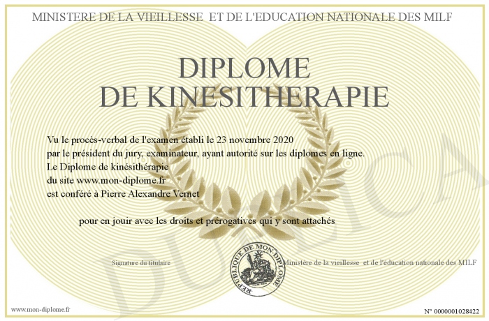 Envoyez par email votre Diplôme de kinésithérapie personalisé