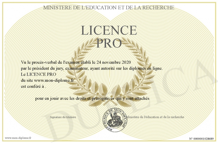 Envoyez par email votre LICENCE PRO personalisé