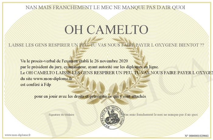 Envoyez par email votre OH CAMELTO LAISSE LES GENS RESPIRER UN PEU. TU VAS NOUS FAIRE PAYER L OXYGENE BIENTOT ?? personalisé