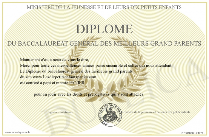 Envoyez par email votre Diplôme du baccalauréat général des meilleurs grand parents personalisé