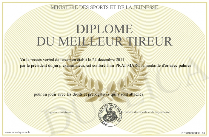 Envoyez par email votre Diplôme du meilleur tireur personalisé