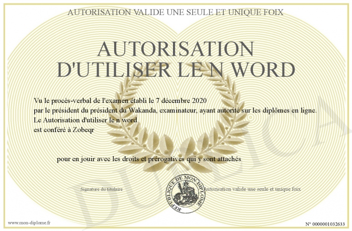 Envoyez par email votre Autorisation d'utiliser le n word personalisé
