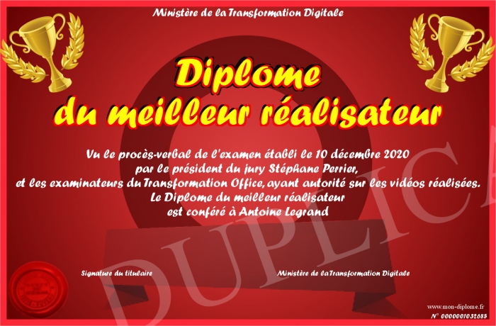 Envoyez par email votre Diplôme du meilleur réalisateur personalisé