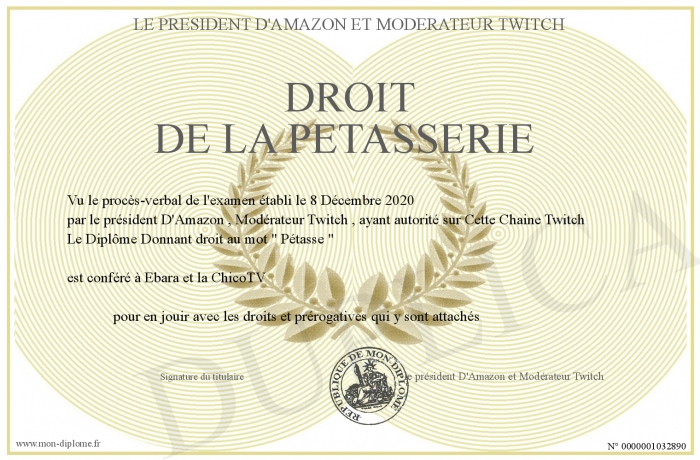 Envoyez par email votre Droit de la Pétasserie personalisé