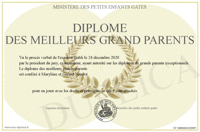 Envoyez par email votre Diplôme des meilleurs grand parents personalisé