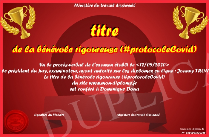 Envoyez par email votre titre de la bénévole rigoureuse (#protocoleCovid) personalisé