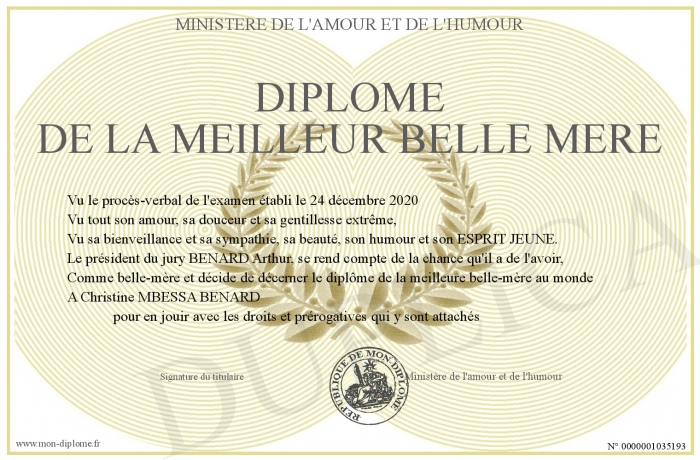 Envoyez par email votre Diplôme de la meilleur Belle Mère personalisé