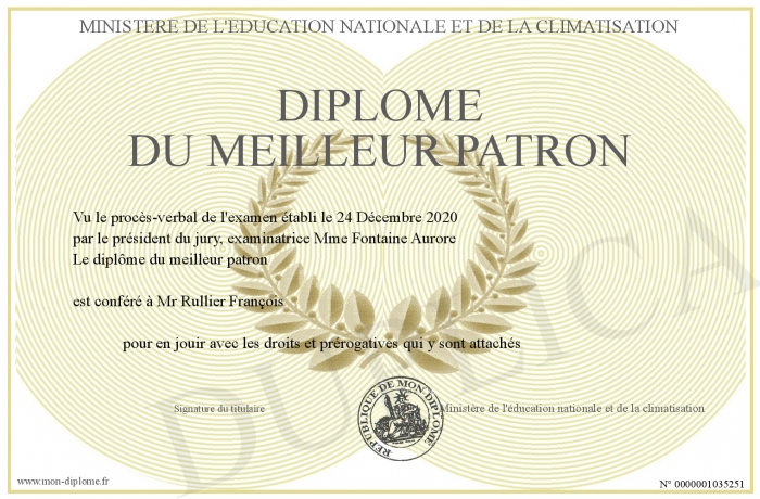Envoyez par email votre Diplôme du Meilleur Patron personalisé