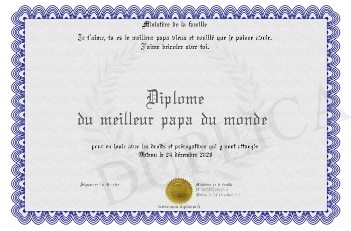 Envoyez par email votre Diplôme du meilleur papa du monde personalisé