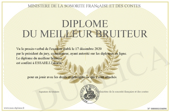 Envoyez par email votre diplome du meilleur bruiteur personalisé