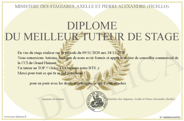 Envoyez par email votre Diplôme du meilleur tuteur de stage personalisé