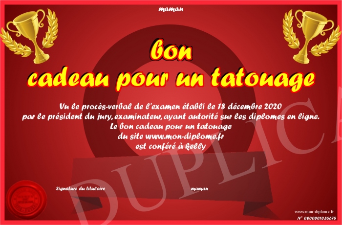 Envoyez par email votre bon cadeau pour un tatouage personalisé