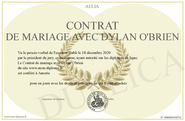 Envoyez par email votre Contrat de mariage avec Dylan O'brien personalisé