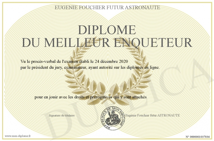 Envoyez par email votre diplome du meilleur enquEteur personalisé