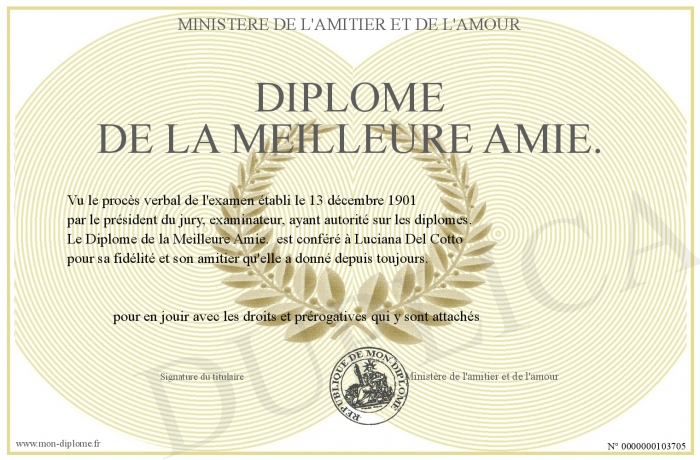 Envoyez par email votre Diplome de la Meilleure Amie. personalisé