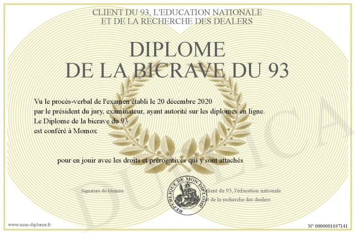 Envoyez par email votre Diplôme de la bicrave du 93 personalisé