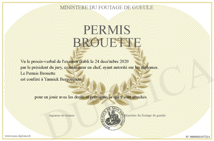 Envoyez par email votre Permis Brouette personalisé