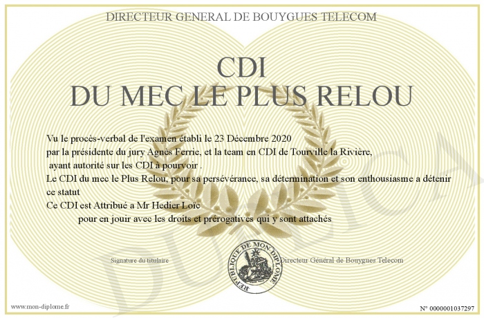 Envoyez par email votre CDI du Mec Le plus Relou personalisé