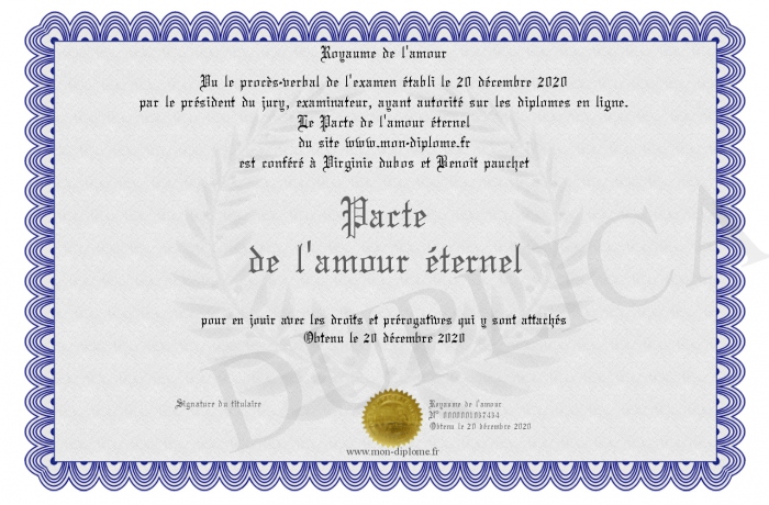 Envoyez par email votre Pacte de l'amour éternel personalisé