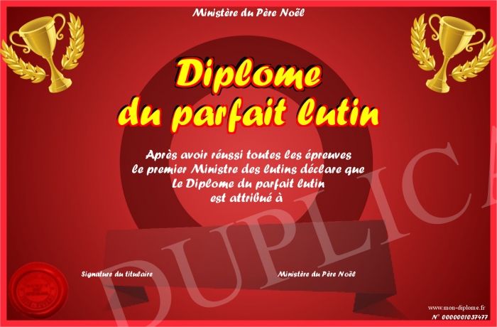 Envoyez par email votre Diplôme du parfait lutin personalisé