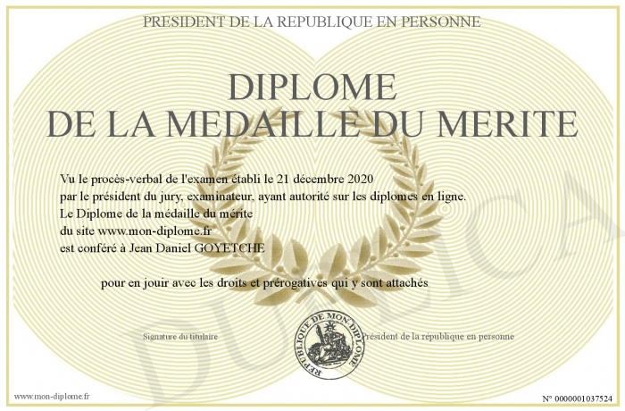 Envoyez par email votre Diplôme de la médaille du mérite personalisé