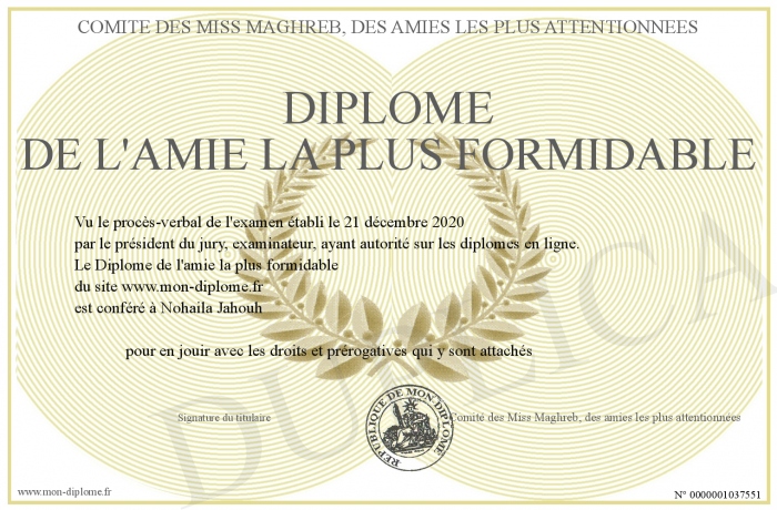 Envoyez par email votre Diplôme de l'amie la plus formidable personalisé
