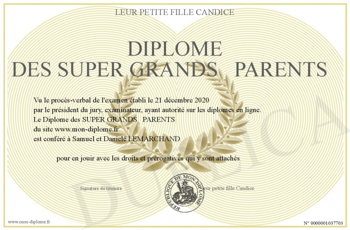 Envoyez par email votre Diplôme des SUPER GRANDS PARENTS personalisé