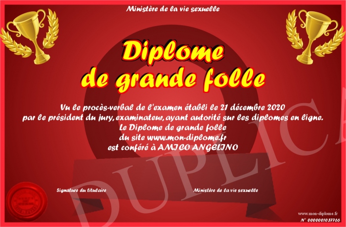 Envoyez par email votre Diplôme de grande folle personalisé