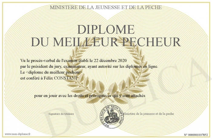 Envoyez par email votre Diplôme du Meilleur pEcheur personalisé